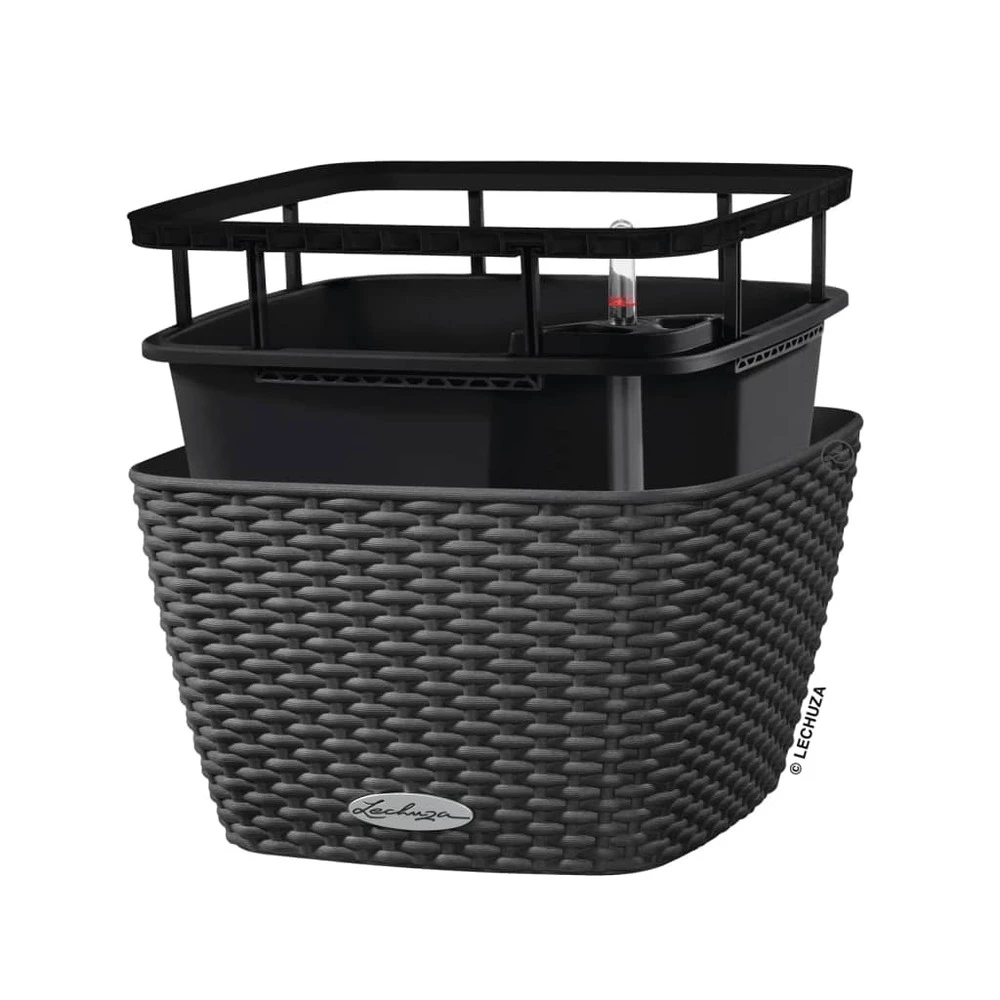 Cette jardinière bacino cottage all-in-one de la marque lechuza est un véritable article polyvalent lorsqu’il s’agit de concevoir des terrasses élégantes et de mettre en valeur des plantes vertes luxuriantes, que ce soit sur le sol, sur le rebord de la fenêtre ou même sur la table de jardin. Système d’arrosage automatique : le système d’arrosage automatique de la marque lechuza s’occupe automatiquement de vos plantes, en veillant à ce qu’elles reçoivent la bonne quantité d’eau et de nutriments pour une croissance optimale.capacité du réservoir d’eau : cette jardinière de table dispose d’un réservoir d’eau de 2 litres.doublure de jardinière interchangeable : il est facile de planter et changer de plantes grâce à la doublure et aux poignées interchangeables de la doublure. De plus, les poignées permettent de retirer facilement la doublure pour le rangement d’hiver.matériaux respectueux de l’environnement : la jardinière sur pied est fabriquée en excellent plastique avec des matériaux recyclés et avec des méthodes de production climatiquement neutres.jardinière légère : de plus, malgré leur extérieur robuste, ces jardinières sont légères et faciles à déplacer. Elles sont également incassables et résistantes aux uv.