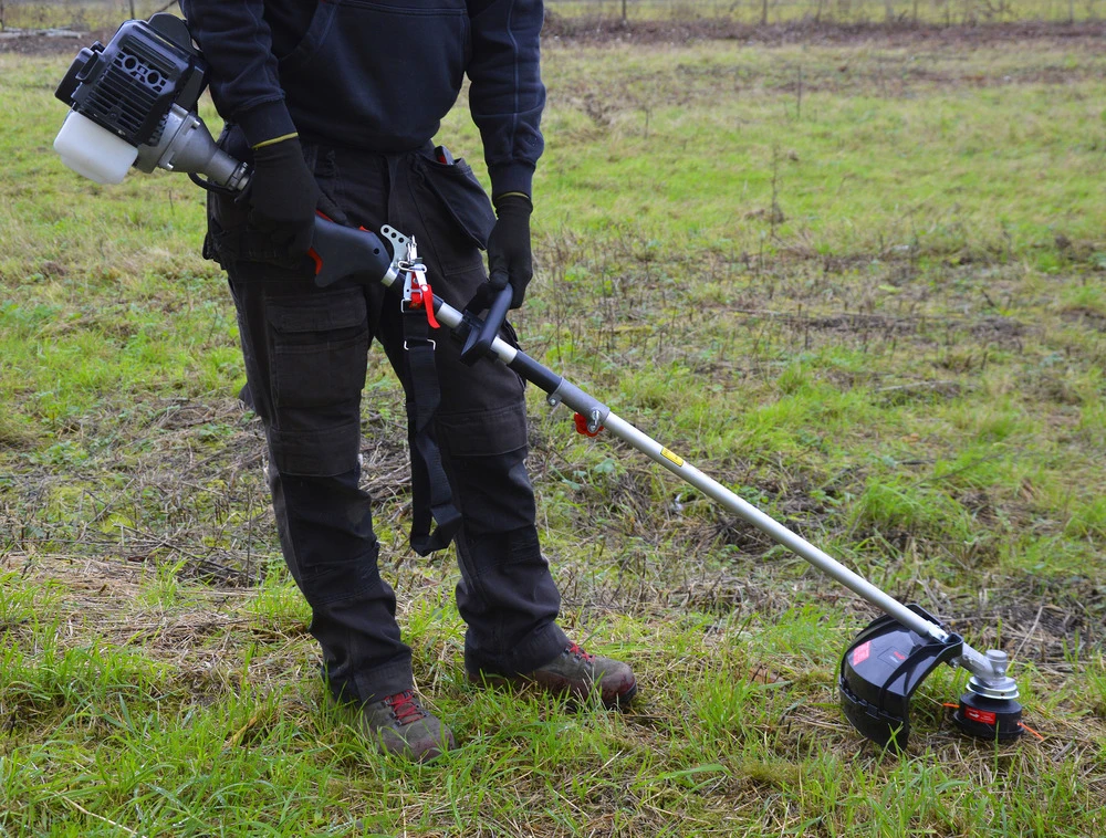 cette dĂ©broussailleuse thermique 4 en 1 est Ă©quipĂ©e d’une sangle qui vous permet de la porter facilement, d’un guide et d’une chaĂ®ne oregon, d’une allonge de 78cm et d’une bobine de fil supplĂ©mentaire d’une longueur de 40m.