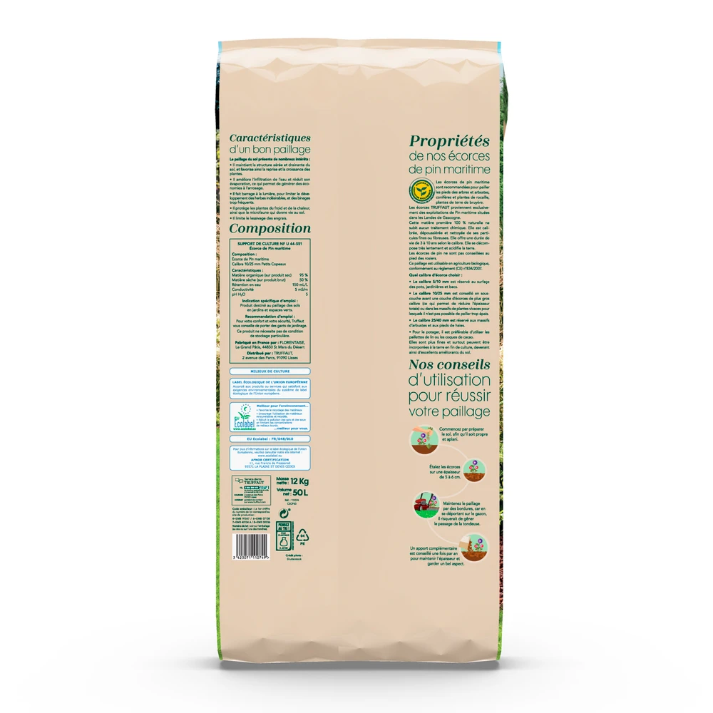Ces copeaux d’Ă©corces de pin maritime vous permettront d’enrichir vos plantations et de leur procurer plusieurs autres bienfaits. Le pin maritime a, en effet, une action drainante et favorise ainsi la reprise et la croissance des plantes. Il rĂ©duit l’Ă©vaporation et amĂ©liore l’infiltration de l’eau permettant ainsi des Ă©conomies d’arrosage. Ce paillage limite le dĂ©veloppement de mauvaises herbes en faisant barrage Ă la lumière. Ainsi, vous effectuerez des Ă©conomies de dĂ©sherbant et protĂ©gerez les racines de vos plantes du froid. Vendu en sac de 50 L, ces copeaux sont de petit calibre.