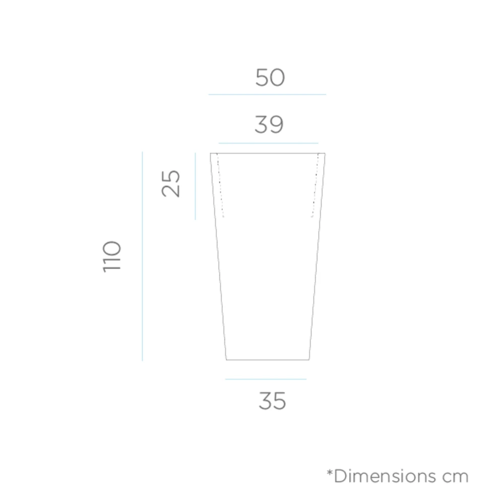 c’est un pot de fleurs haut aux lignes droites et une finition lisse. Ce modèle existe en plusieurs couleurs et dimensions.