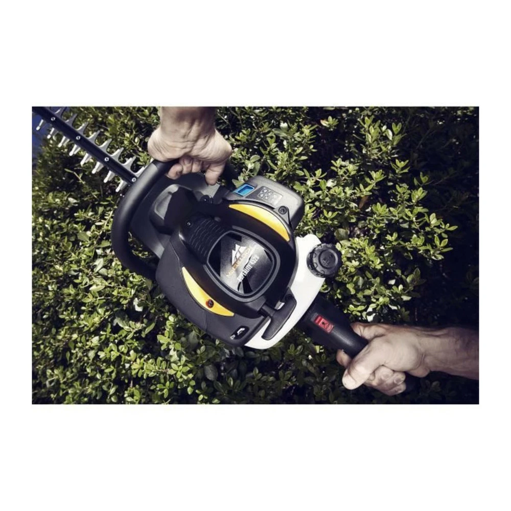 Le taille-haies thermique mcculloch superlite 4528 est puissant, silencieux et ergonomique. Il est idĂ©al pour l’Ă©lagage de haies en zone rĂ©sidentielle. Le taille-haies mcculloch superlite 4528 est dotĂ© de la technologie softstart qui permet un dĂ©marrage facile, rapide et permet de rĂ©duire l’effort au dĂ©marrage de 40%. Il est dotĂ©e d’une poignĂ©e ergonomique anti-vibration fabriquĂ©e avec des matĂ©riaux doux garantissant un vĂ©ritable confort d’utilisation. La poignĂ©e arrière du taille-haies mcculloch superlite 4528 est pivotante pour une meilleure prise en main quelle que soit la forme de la haie Ă Ă©laguer. Ce taille-haies thermique mcculloch est Ă©quipĂ© d’un lamier double action taillĂ© au laser, d’une pompe d’amorçage, d’un moteur puissant et d’un retour automatique du bouton stop. Vitesse de coupe Ă©levĂ©e : 4050 coupes / min, Ă©cartement des dents large : 28 mm et lamier de 45 cm pour une coupe nette et efficace. CaractĂ©ristiques techniquesmoteurcylindrĂ©e 21.7 cmÂłcontenance du rĂ©servoir 0.3 lequipement de coupelongueur de la lame 45 cmecartement des dents 28 mmdiamètre maxi conseillĂ© pour les brindilles 20 mmvitesse de coupe 4050 coupes/mindimensionshauteur du produit 23.5 cmlongueur du produit 102 cmlargeur du produit 23 cmpoids 4.7 kg