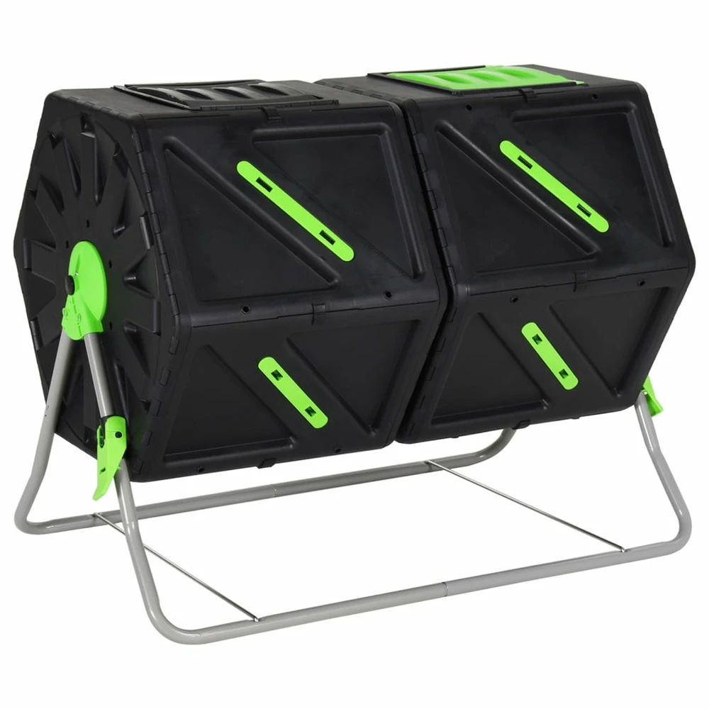 Réduisez vos déchets de jardin et de cuisine à tout moment de l’année grâce à ce composteur à tambour et produisez votre propre compost que vous pourrez utiliser comme engrais organique pour vos plantes. Matériau durable : le conteneur à compost est fabriqué en pp. Le polypropylène (pp) est un plastique populaire qui est léger, solide et résistant aux chocs.pieds robustes : les pieds en métal de cette poubelle à compost assurent la robustesse et la stabilité.conception à culbutage : la conception de culbutage de ce composteur de déchets augmente la productivité du mélange. Et grâce aux barres de mélange internes qui accélèrent le processus de décomposition, vous pouvez vous attendre à un compost riche et fertile en quelques semaines seulement !composteur à deux chambres : deux bacs à compost rotatifs indépendants profitent du compostage par lots, ce qui vous permet de changer continuellement de côté tandis que l’autre permet d’ajouter de nouveaux déchets, offrant un flux ininterrompu de compost riche et sain.excellente aération : le tambour à compost est doté de trous d’aération qui permettent de mélanger beaucoup d’oxygène au compost.utilisation facile : le système de tambour efficace est le moyen simple d’obtenir un compost parfaitement cuit sans avoir à creuser, retourner et mélanger à la main. Tout ce que vous avez à faire est d’ouvrir la porte coulissante, d’ajouter vos déchets et de tourner la poignée tous les deux jours environ. Bon à savoir :pour faciliter au maximum le montage, chaque produit est livré avec des instructions.